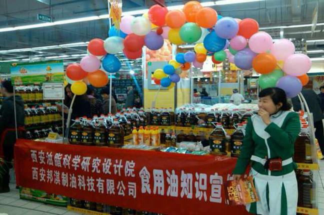 這次推廣,油脂產(chǎn)業(yè)以邦淇獲“2013陜西顧客滿意度測(cè)評(píng)食用油行業(yè)最佳顧客滿意獎(jiǎng)”殊榮為契機(jī),高度重視、精心組織、全員參與,以“您的健康、我的牽掛”為主題,貫穿“誠信、責(zé)任、擔(dān)當(dāng)”;體現(xiàn)“綠色、安全、科普”,為更好指導(dǎo)科學(xué)消費(fèi),特意邀請(qǐng)石羊油脂產(chǎn)業(yè)戰(zhàn)略合作伙伴——西安油脂科學(xué)研究設(shè)計(jì)院有關(guān)專家全程參與西安的全部活動(dòng),接受消費(fèi)者現(xiàn)場(chǎng)咨詢、舉辦油品知識(shí)講座、指導(dǎo)食用油鑒別常識(shí),重點(diǎn)是結(jié)合石羊油品安全、綠色、健康的價(jià)值理念進(jìn)行宣講,西安KA分別在華潤渭濱路店、人人樂玉祥門店舉行,兩天達(dá)成銷量180桶;社區(qū)分別在大明宮西鐵小區(qū)、鳳城六路菁華名門、乾唐華府舉行,兩天實(shí)現(xiàn)銷售100余桶,通過空桶優(yōu)惠、贈(zèng)送防霧霾口罩等形式,對(duì)邦淇特別是石羊品牌的傳播意義深遠(yuǎn)。