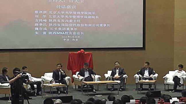 全國政協(xié)副主席韓啟德出席并致辭,省長婁勤儉,北京大學(xué)校長王恩哥,省委常委、西安市委書記魏民洲,光華管理學(xué)院院長蔡洪濱為分院揭牌。石羊集團(tuán)董事長魏存成出席此次活動并作為特邀對話嘉賓與北大光華學(xué)院院長蔡洪濱、北大光華學(xué)院副院長劉學(xué)、陜西省發(fā)改委主任方瑋峰等教授和專家進(jìn)行“新絲路,新起點”西部發(fā)展論壇,參加高峰對話。光華管理學(xué)院黨委書記冒大衛(wèi)博士擔(dān)任圓桌論壇主持人。石羊集團(tuán)董事長魏存成十幾年間六度在北大光華學(xué)習(xí),他以企業(yè)家的角度,講述了絲綢之路經(jīng)濟(jì)帶建設(shè)中,如何提升企業(yè)實力,并總結(jié)北大的學(xué)習(xí)助他驗證過去、修正未來。