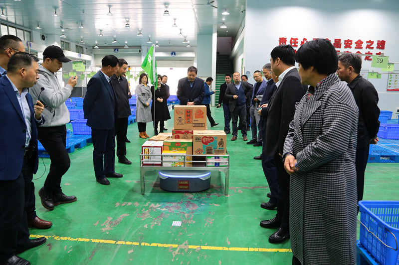 簽約儀式后,與會(huì)領(lǐng)導(dǎo)與企業(yè)代表、專(zhuān)家等視察黃馬甲生鮮物流基地,并在石羊集團(tuán)總部參觀座談。