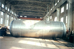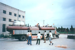 | 60噸臥式濃硝酸貯罐裝運出廠 | 50立方米立式冰醋酸鋁貯罐裝運出廠 |